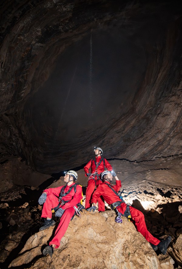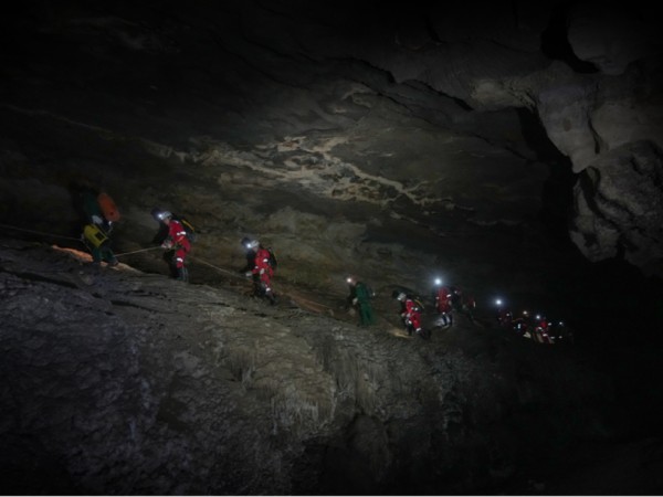 ▲2025年12月,航天员在洞穴中开展团队协作训练。(图片据中国航天员科研训练中心)