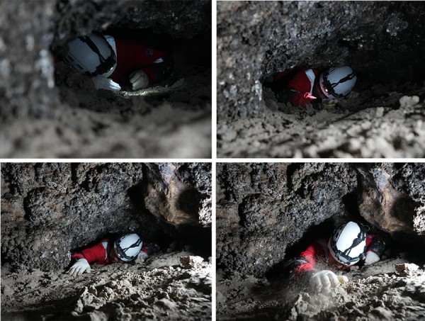 ▲2025年12月,航天员在洞穴训练中艰难爬过狭窄通道。(图片据中国航天员科研训练中心)