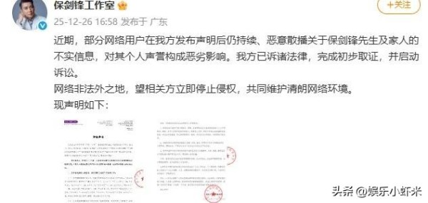 这下,保剑锋一家可不干了。他们工作室第一时间回应,说最后一次声明,要通过律师起诉黄女士网络侵权。已经把材料提给法院了,结果得看法庭见分晓。不过话说回来,他们倒是挺耐着性子等法院流程慢慢走完,要求大家也得理智点,别光浪费公共资源。
