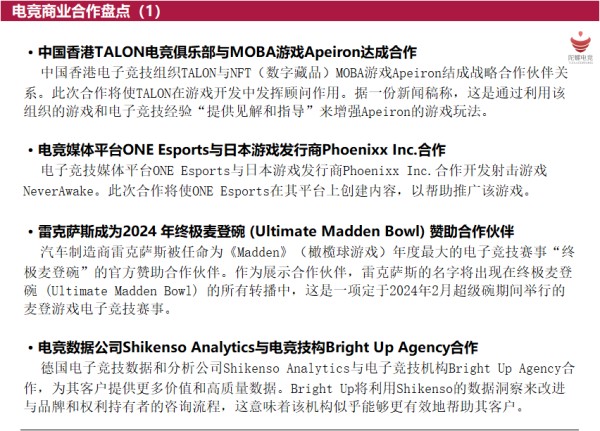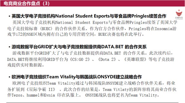根据陀螺电竞的不完全统计,本周电竞产业商业合作共计10起。