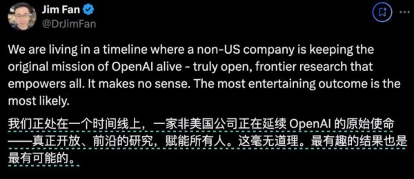 Jim Fan 甚至认为,它们做了OpenAI本来应该做的事,开源。