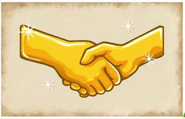 两只金色的手在紧紧地握着,周围还闪耀着白色的光芒。