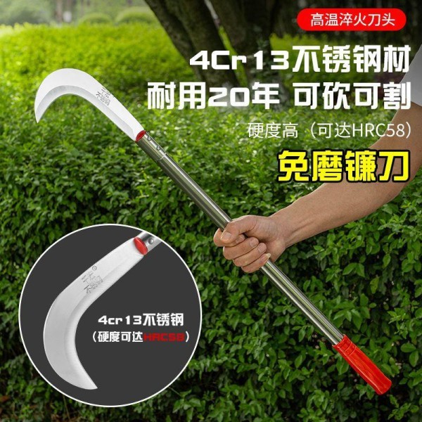 为什么专业果园的枝条切口总是平整光滑?关键在于4铬钢镰刀的极致锋利度。普通铁质刀具砍几次就卷刃,而这把一体成型镰刀: