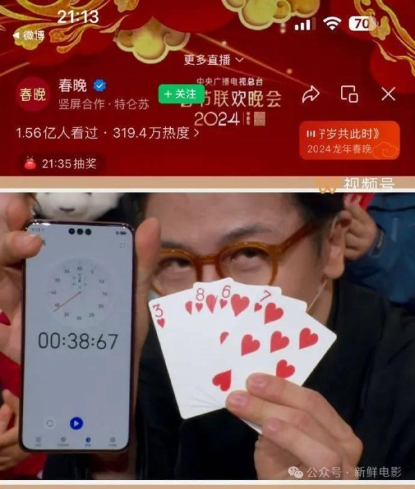 换句话说,这名男士可能并没有真正启动计时器,而是播放了一段事先录制好的视频,从而在视觉上呈现出与刘谦手中的扑克牌数字一致的效果。