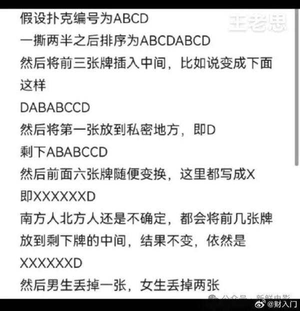 然而,图片中的解释显得过于繁琐,网络上的一些奇特人物已经通过视频方式详细地解释了这一魔术的基本原理,观众只需观看下方的视频便能迅速理解