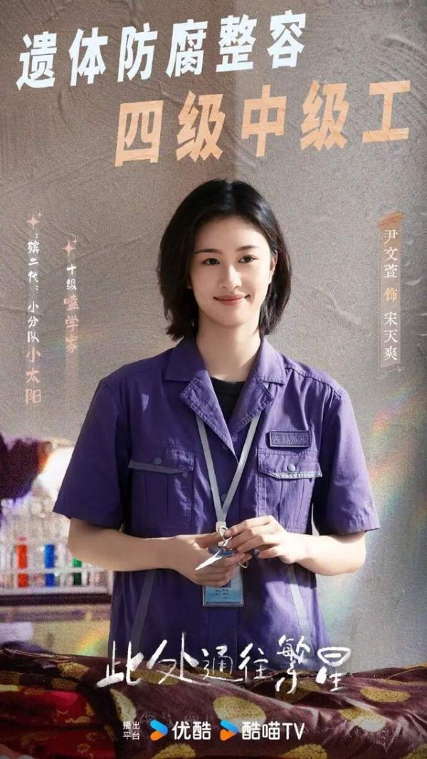 尹文萱签约虎鲸文娱半年左右,得到在《此处通往繁星》中饰演“小太阳”宋天爽的机会,这个角色也与其本人大方、自信的特质相配。