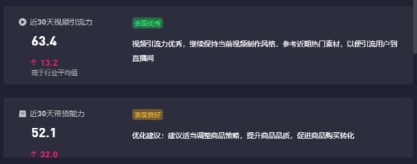 抖查查上对其优化建议为,适当调整商品策略,提升商品品质,促进商品购买转化。
