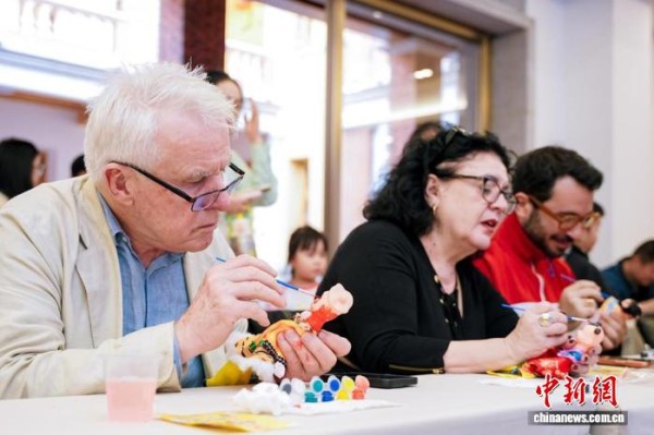 欧洲博主在福建泉州体验布袋木偶头彩绘技艺。泉州市文化广电和旅游局供图