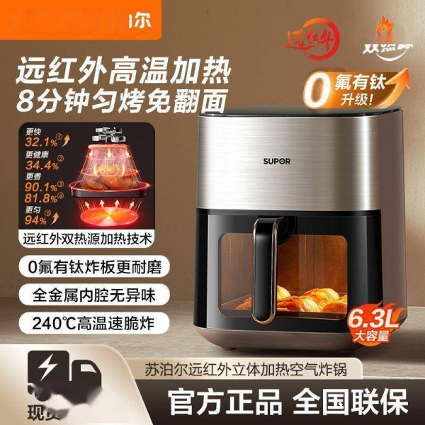 随着技术进步,如今的空气炸锅已经发展到第四代产品,解决了早期机型加热不均、容量小、操作复杂等问题。苏泊尔作为行业领导者,其最新款空气炸锅集成了AI智能、蒸汽补水、远红外等前沿技术,将用户体验提升到新高度。