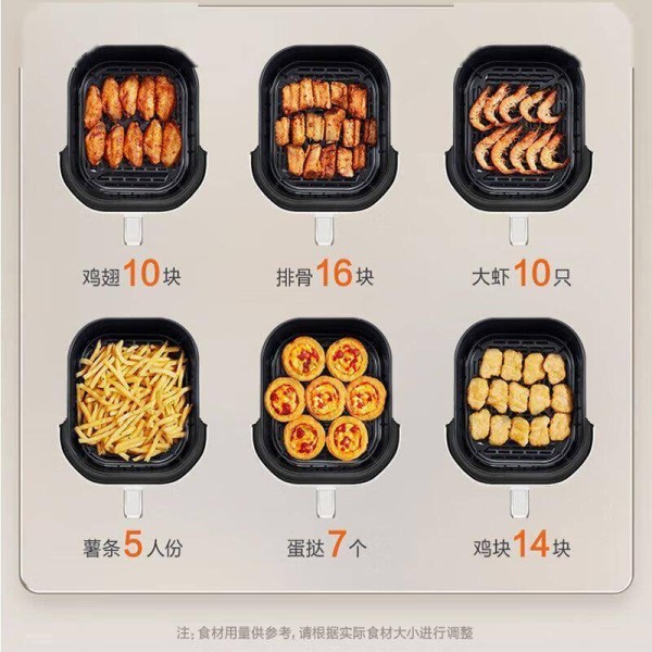 7L大容量可以一次性制作足够6-8人分享的小食拼盘,薯条、鸡翅、洋葱圈、炸鲜奶等多种小吃同步烹饪,聚会时再也不用守在厨房错过欢乐时光。