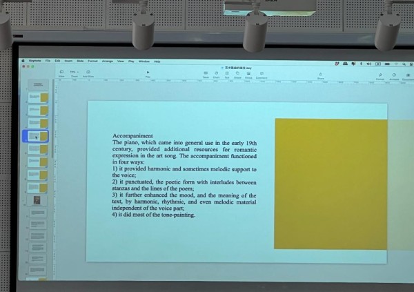 金平教授之后引入经典艺术歌曲,对不同作曲家的作品及其风格特点进行解析: