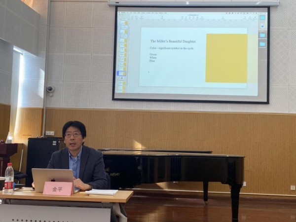 本场讲座金平教授从社会人文的视角阐述了德奥艺术歌曲的历史成因、曲体结构、代表性作品,剖析了诗词对于德奥艺术歌曲创作的深刻影响,并指出作曲家、演唱者、理论分析学者在创作、阐释作品时所应关注乐曲歌词、语言通感等相关问题。讲座之后,金平教授与师生围绕相关学术问题进行了交流。