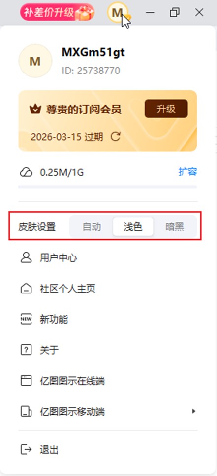 在亿图图示中,可以更改UI的主题颜色,软件提供三种主题:蓝色、深紫色和深灰色。单击右上角的“选项”按钮,然后选择所需的颜色。