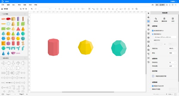 之后,您可以从符号库中拖拽相关图形到空白画布中。这样,绘图过程就变得简单又有趣。您可以添加不同的符号到画布中,然后通过缩放、组合、连接等方式,初步组合出一幅绘图作品。菜单栏、编辑栏和属性栏提供丰富的设计工具,帮助您制作出精美专业的绘图作品。
