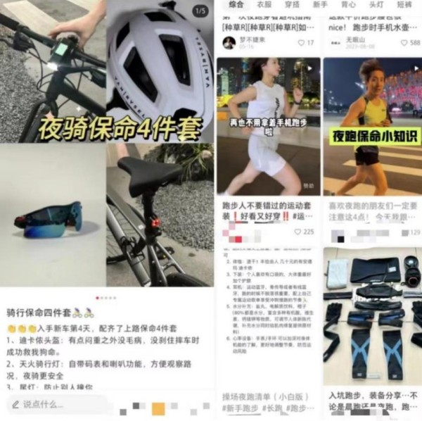当然,部分夜骑者的行为,并不能代表所有人。在社交平台上,很多夜晚运动爱好者都非常注重安全性,有人分享夜骑保命4件套:头盔、骑行灯、尾灯和护目镜;也有人专门评测保命骑行灯,为骑友推荐安全耐用的优质产品;而夜跑相关的跑鞋、心率设备、护膝等对运动安全有帮助的装备也在被许多爱好者推荐。