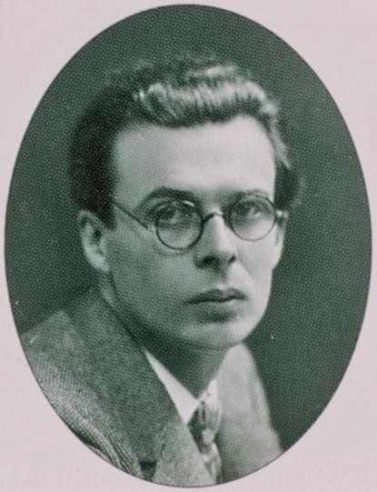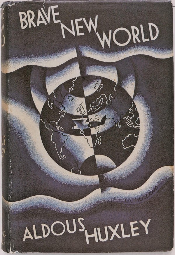 英国作家阿道斯·赫胥黎和他的《美丽新世界》首版封面。