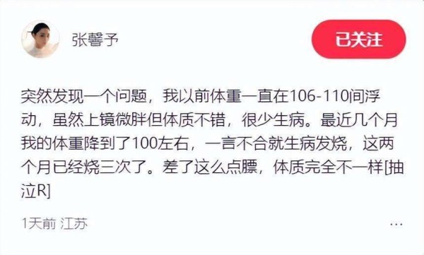 张馨予一天瘦了2斤