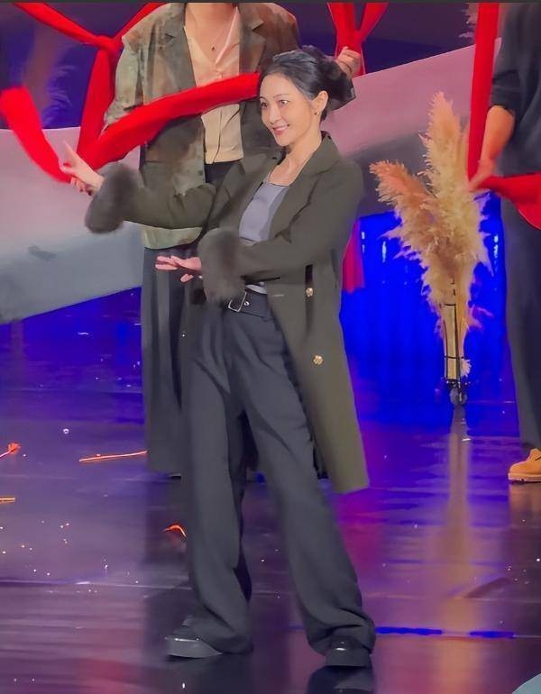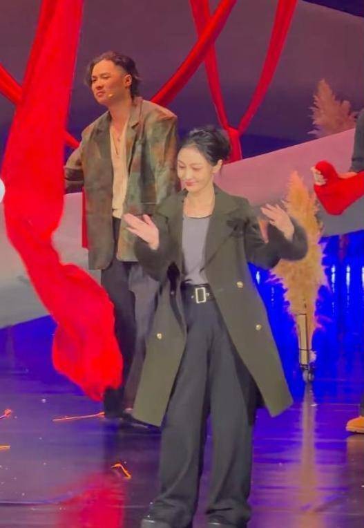 当天,姚笛穿着一件简洁的黑色长款外套,配上一条阔腿裤,站在布满红色垂坠幕布的舞台中央,笑容温暖而自然,整个人散发着一种轻松的气质。最令人印象深刻的,是她在谢幕时的姿态。她张开双臂,优雅地致意,躬身鞠躬的角度也恰到好处,既不显得过于拘谨,也没有半点敷衍的感觉,浑身散发着专业的舞台气质。这一刻,姚笛毫不掩饰自己的自信。镜头对准她的脸,毫无惧色。43岁的她,皮肤紧致得像是涂了玻璃光,眼神明亮,宛如三十岁出头的模样,令人惊叹不已。