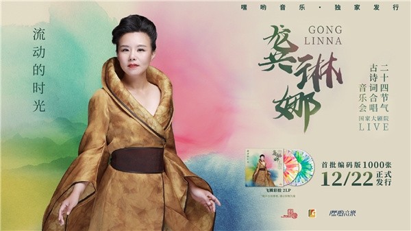 2023年12月22日冬至,龚琳娜再次携手嘿哟音乐发行第二张实体飞溅彩胶专辑《流动的时光·二十四节气古诗词合唱音乐会LIVE》,独立编码版首批限量发行1000张,专辑收录了24首以二十四节气为主题、风格丰富多变的原创音乐。