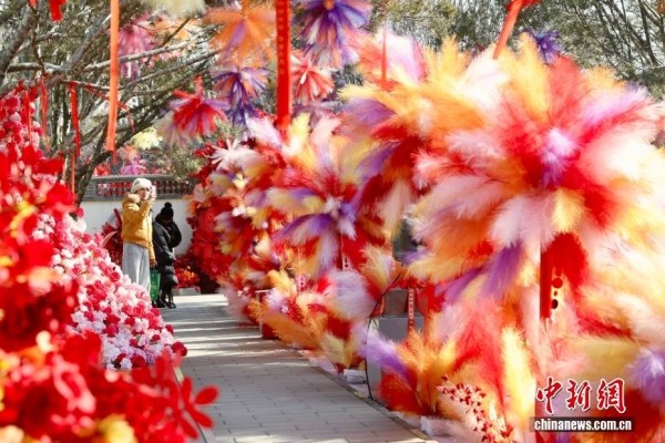 2月4日,市民在北京圆明园海棠书院参观。当日是二十四节气中的立春,圆明园海棠书院内装点了彩色毛绒烟花,为游客营造出新春的暖意和生机。中新社记者 易海菲 摄