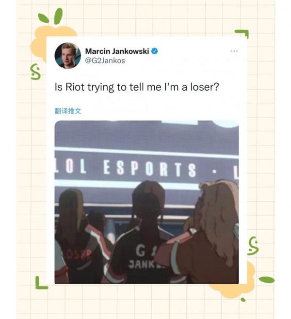 近日,S12赛季的主题曲MV惊艳亮相,其中一幕尤为引人注目:两位粉丝身着各自战队的队服,左侧的身影似乎代表着Loser,而右侧则是G2 Jankos的化身。这一细节被Jankos本人捕捉到,并巧妙地在推特上进行了调侃,调侃对象正是那款MV。这一小插曲不仅激发了粉丝们的热烈讨论,更将S12赛季的氛围推向了一个新的高潮。
