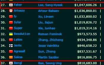 2017季中冠军赛以SKT T1的卫冕成功而圆满落幕。赛后,Faker的职业生涯奖金池也实现了显著的突破,从原先的91万美金一跃升至超过百万美元,具体为104万美元,折合人民币高达721万元。Faker在排名上也有所提升,从原先的第33名攀升至第27名。在英雄联盟项目中,他以104万美元的奖金高居榜首,而他的老队友Bengi则以81万美金位列第二,紧随其后的是榜单上的第37位。