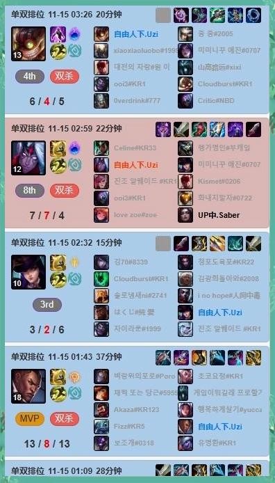 在这一背景下,UZI的复出传闻成为了众人关注的焦点。这位曾一度淡出一线的传奇ADC,如今似乎正准备重返职业赛场。最近,有迹象显示他在韩服排位赛中表现出极高的训练强度,使用“Last丶Order”账号进行的薇恩、卡莎等英雄的操作训练,不仅展示了其依旧旺盛的竞技状态,更在超过70%的胜率下令人为之振奋。连续15天每天超过10场的训练量,更是远超普通业余玩家的训练强度,彰显出其“铁人”般的职业精神与投入。