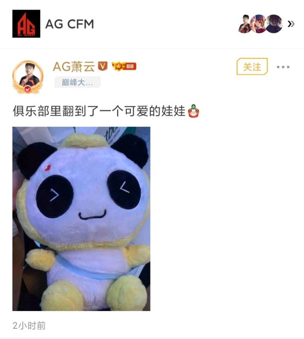 萧云在个人动态晒出了自己在俱乐部找到的熊猫娃娃,大家觉得云队的可爱新玩具颜值几分呢?各位CFer在整理房间时有没有得到过什么意外收获呢?