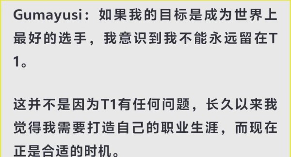 HLE在K杯中不敌T1后,Peyz的出色表现赢得了众多观众的青睐。然而,近期从T1转会至HLE的 姑妈却面临了不少质疑。在最近的一次采访中,姑妈针对转会期离队的问题进行了公开回应。他坦言,若立志成为世界赛场上的顶尖选手,他意识到自己无法长久地留在T1,这并非因T1有任何过错。