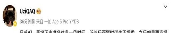 他这句“接下来准备休息一段时间,之后如果要直播的话会提前告诉大家的”,说得明明白白。