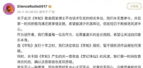 紧接着的重磅炸弹更惊人:“即日起收回所有演唱授权,暂不授予任何人演唱! ”