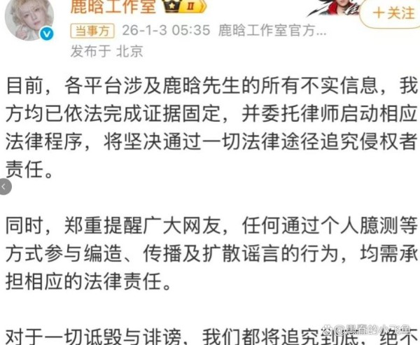 面对如此严重的指控,被点名艺人的工作室反应迅速。范丞丞方率先发布详细声明,承认曾在朋友聚会中有过一面之缘并合影,但否认所有私下往来,直指所谓“女友视角”照片均为偷拍或合成。鹿晗工作室则更为干脆利落,直接甩出“已全平台取证,追究法律责任”的强硬公告,态度鲜明。而同样被卷入的林更新工作室,则贡献了“阴阳文学”——在对方提及“抑郁症”时,直接回复“祝早日康复”,堪称公关界的“精准打击”。几份风格迥异的辟谣,迅速稳住了粉丝军心。