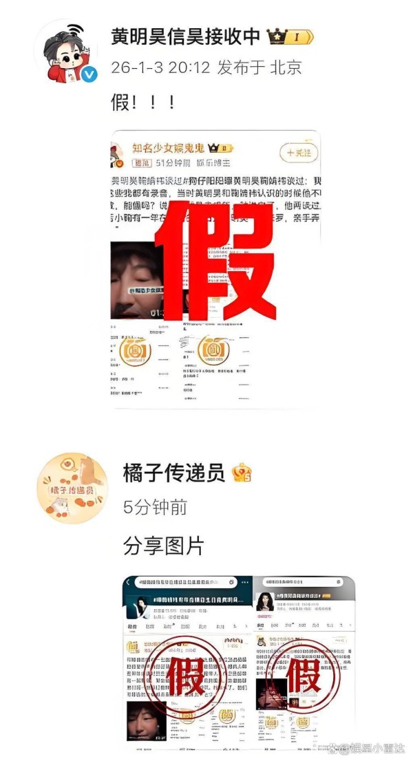 值得注意的是,这已是黄明昊团队在同一天内的第二次公开辟谣。早些时候,针对某博主的多项爆料,黄明昊工作室已发表严正声明,称相关信息“均为毫无事实依据的谣言”,并表示将依法追究造谣者的法律责任