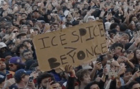 Ice Spice 最近参加音乐节,超过一万人到现场支持,其中一位粉丝举起了瞩目的牌子: “ICE SPICE > BEYONCE”(冰辣妹超越碧昂斯),图片还得到了很多人的传播和转发。说明其实在不少人心中,Ice Spice 已经超越碧昂丝了。