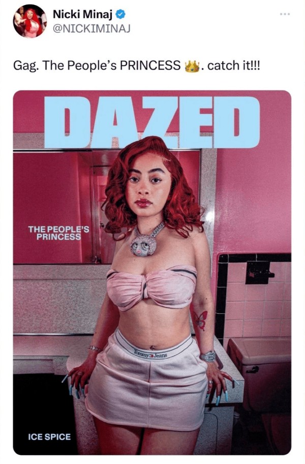 Nicki Minaj 也通过社交媒体平台正式认亲,认为 Ice Spice是真正的公主。