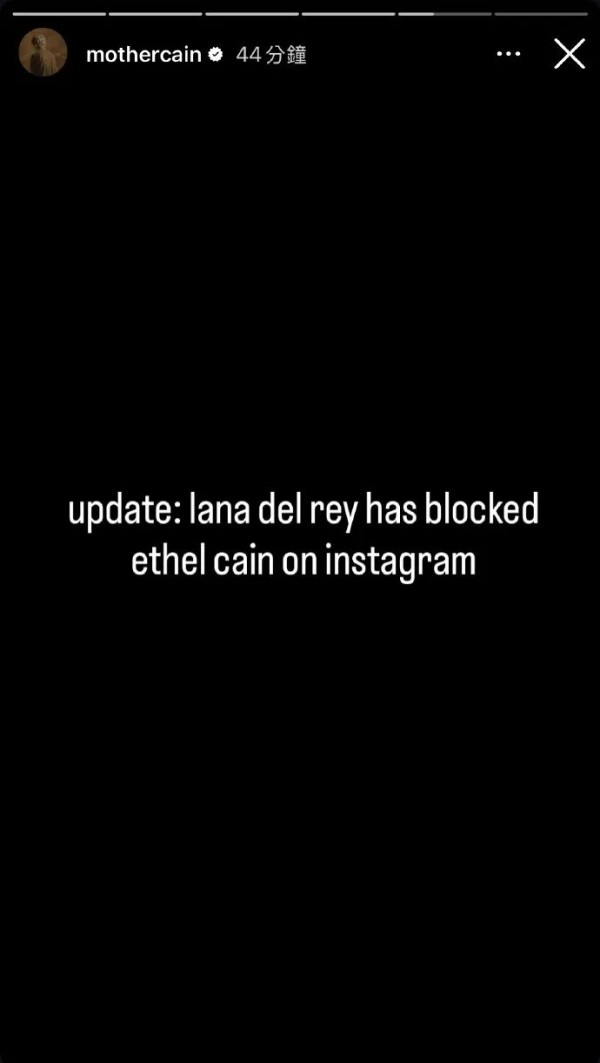 而 Ethel Cain 得知后,通过社交媒体表示 Lana Del Rey 已经拉黑了自己…