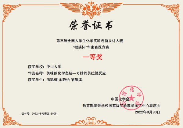 中山大学-科普实验-总决赛特等奖、华南区一等奖