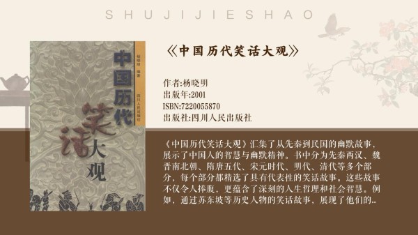 《中国历代笑话大观》有提及, 在历史的长河中,许多典故不仅蕴含着深刻的道理,还常常带有让人忍俊不禁的幽默元素。这些典故经过岁月的沉淀,被后人不断解读和演绎,形成了独特的文化魅力。