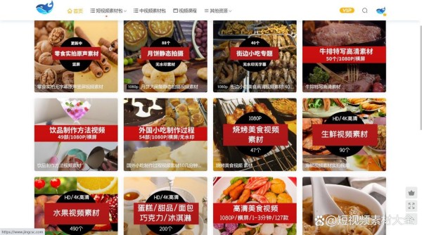 鲸材网专注于提供高清无水印的美食摄影和视频素材。这个平台上有从甜点到主菜的各种美食素材,每一个视频都以高清晰度捕捉食物的细节和色彩,非常适合需要高品质视觉效果的创作者。不仅如此鲸材网还提供各种热门变现玩法的解析与视频课程供大家下载学习,提高自媒体变现能力,甚至给大家准备了自媒体工具库, 这大大的提升了自媒体人的创作与变现效率!
