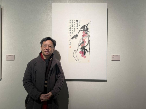 文史作家、书画家刘墨此次带来一幅精美的“荔枝画”——《东坡诗意图》,这是全场唯一的一幅以水果展示苏东坡底蕴的美术作品。“苏东坡很爱吃甜食,水果里他更偏爱荔枝,所以我用他喜欢的东西来代表他,并附上了他的诗词。”