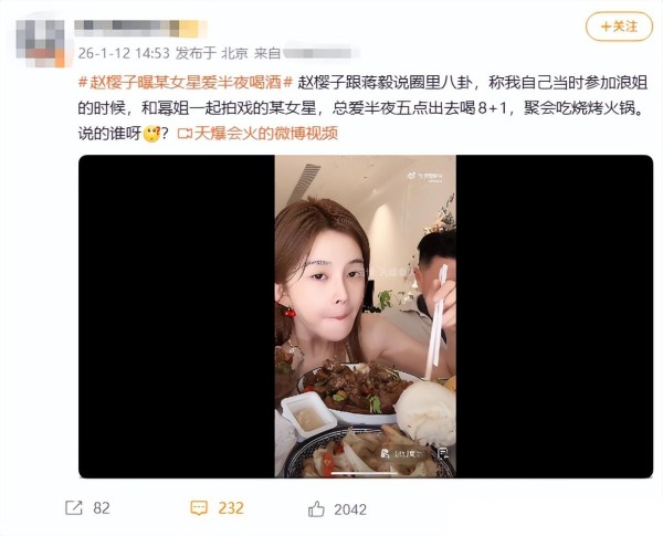 其实,说到底,这场直播不过是赵樱子和蒋毅两个人的茶歇唠嗑,但偏偏赵女士没管住嘴,话锋一转,把镜头对准了圈内八卦,据她自爆,她录《浪姐》的时候发现,有位经常和杨幂搭戏的女演员,总爱半夜出去喝“8+1”,烧烤、火锅样样不落,说白了,就是成年人聚会那点事,不过提到半夜、酒精,再加个杨幂的名字,不炸才怪,一石激起千层浪,弹幕飞速刷屏,“到底是谁?”、“是不是郭采洁?”、“要出大事?”全来了。
