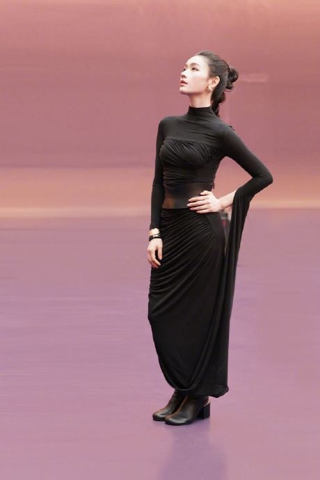 Angelababy瘦身后彻底放飞自我,穿紧身裙秀身姿,站台当模特毫不畏惧