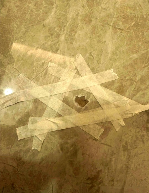 餐厅新购的一组边柜,仅在使用短暂时间后,便因磕碰而缺了一个角,严重影响整体美观。幸得朋友指点,只需5元成本便可自行修复。具体操作如下: