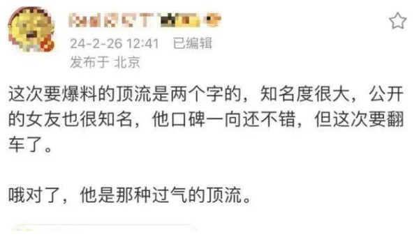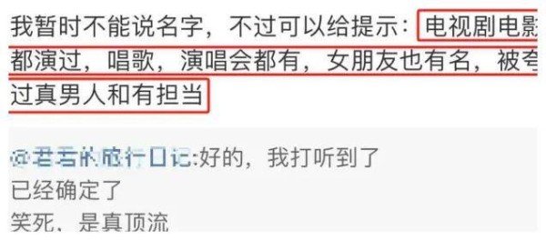 据说这位男星是一个从爱豆转型为歌手,又踏足影视行业的大佬,微博粉丝量超过5000万,同时还有公开的恋情!哇,看来要是这个八卦爆出来,肯定会轰动一时啊!