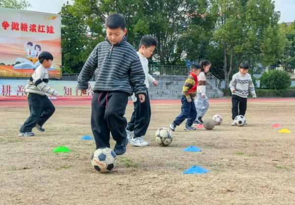 同时,学校着力构建多维足球育人体系,全面推进足球进课堂,实现每班每周一节足球课,开展分层趣味教学,并联动各方资源组建校足球队与足球社团。此外,学校坚持“以赛促练、以赛提质”,打造“班班有球队、年年有比赛”的校园足球氛围,积极组织校队参加各级比赛,让足球运动成为传承耕读精神、彰显乡村办学特色的重要载体。