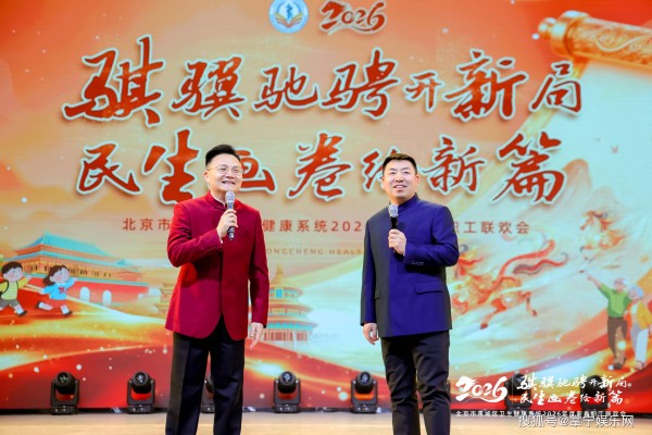1月30日,东城区卫生健康系统在东城区少年宫举办“骐骥驰骋开新局,民生画卷绘新篇”2026年新春职工联欢会。相声名家李伟建携爱徒亢立飞应邀登台,表演原创相声《健康欢乐在东城》,以幽默接地气的语言、生动鲜活的表演,为一线医务工作者送上新春欢笑与祝福,赢得全场热烈掌声。