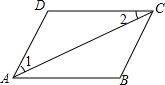如图,AC平分∠DAB,∠1=∠2,请结合图形填空: