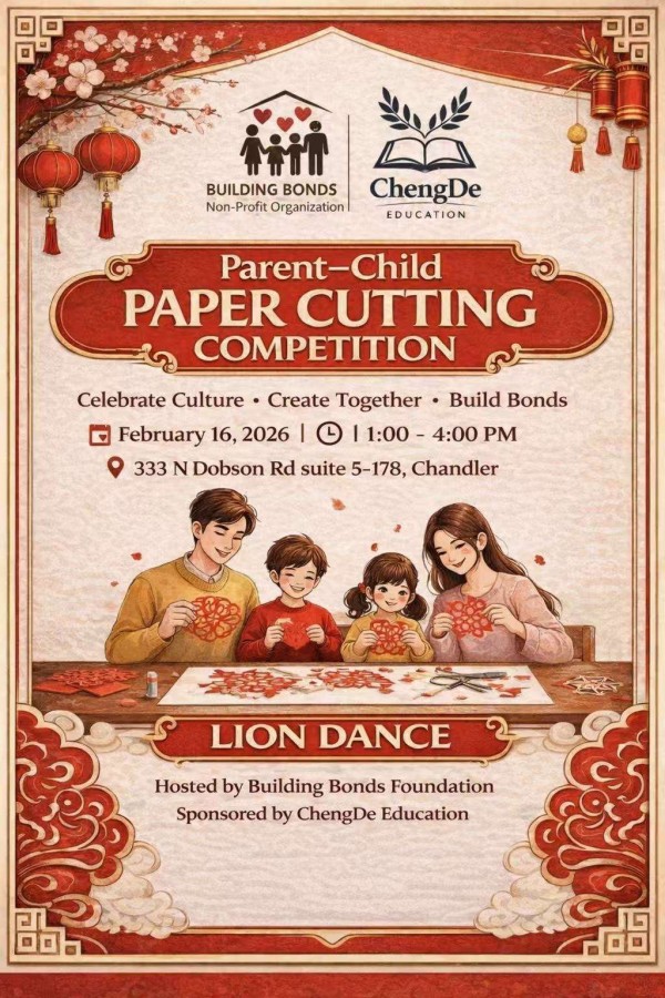 Building Bonds Foundation还宣布,将于2026年2月16日(周一)下午1:00至4:00,在Chandler举办下一场大型社区活动——“亲子剪纸比赛&舞狮文化活动”。