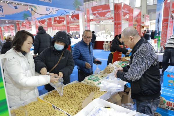 2月9日,在2026廊坊国际年货节上,琳琅满目的商品,引来市民围观。市民正在选购小吃。新京报记者 寇家祥 摄
