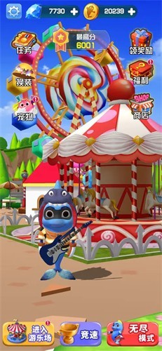 1、操控调皮卡通的跳跳鱼形象,配以Q萌可爱的宠物,乐享畅快跑酷